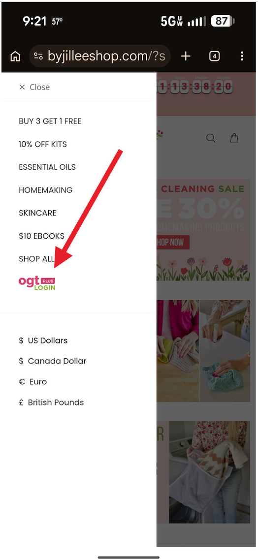 OGT Plus - How to Log In to the ByJillee Shop on a Mobile Device